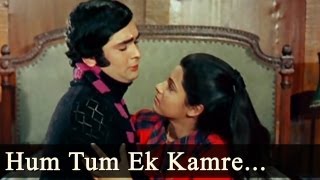 Hum Tum Ek Kamre Mein Band Ho Lyrics in English : Sung by Lata Mangeshkar ,Shailendra Singh is a super hit song from the 1973 Movie Bobby. Starring Dimple Kapadia, Rishi Kapoor. Music Directed by Laxmikant Pyarelal. Presented on Shemaroo.